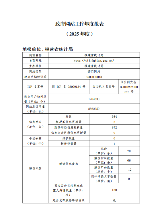 2025年福建省统计局网站工作年度报表